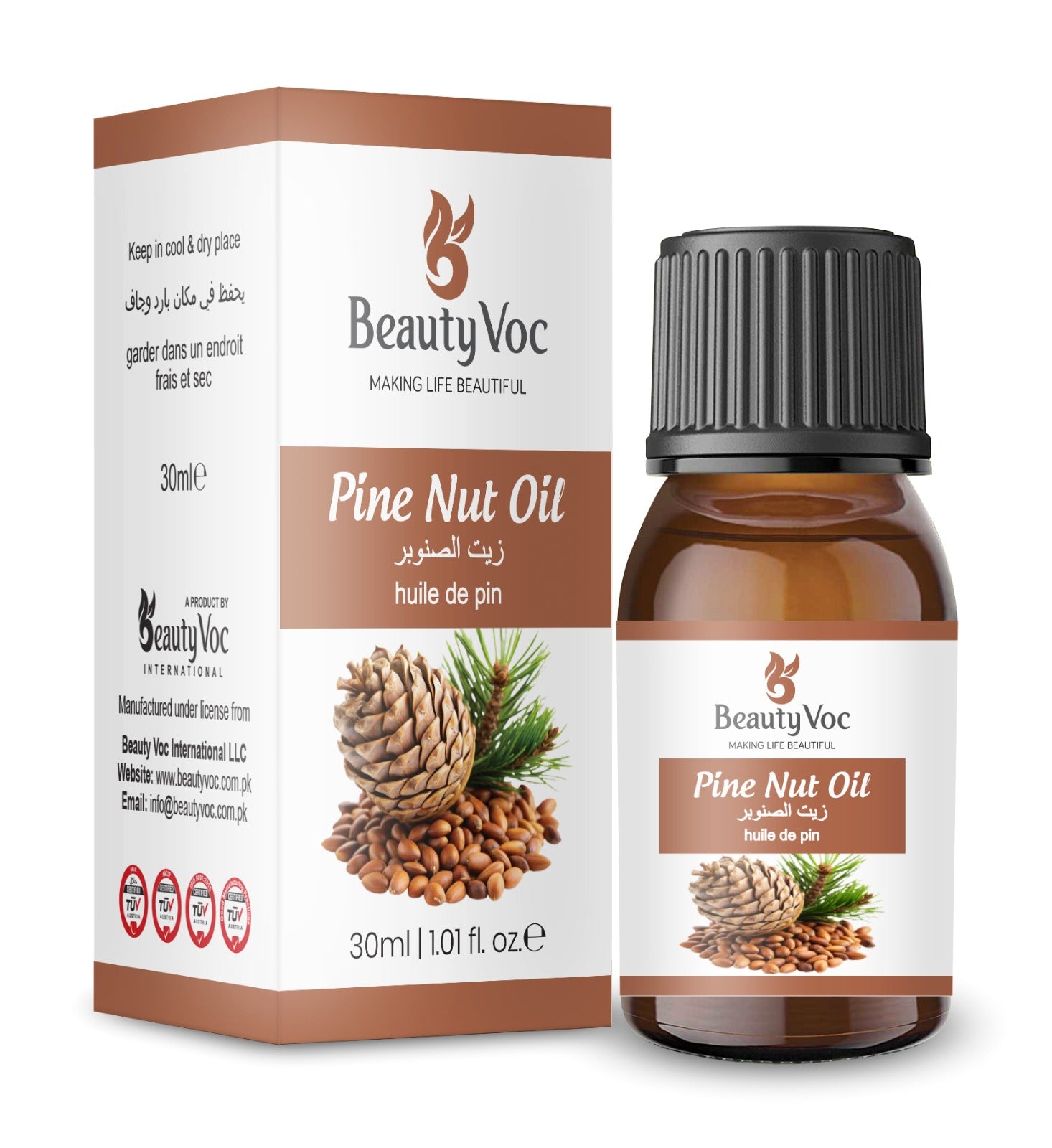 BeautyVoc Pine Nut Oil is a 100% pure, cold pressed oil rich in pinolenic acid, vitamin E, and antioxidants. Lightweight and versatile, it is ideal for skin hydration, hair nourishment, digestive support, healthy cooking, and cardiovascular wellness, while also offering anti inflammatory benefits.