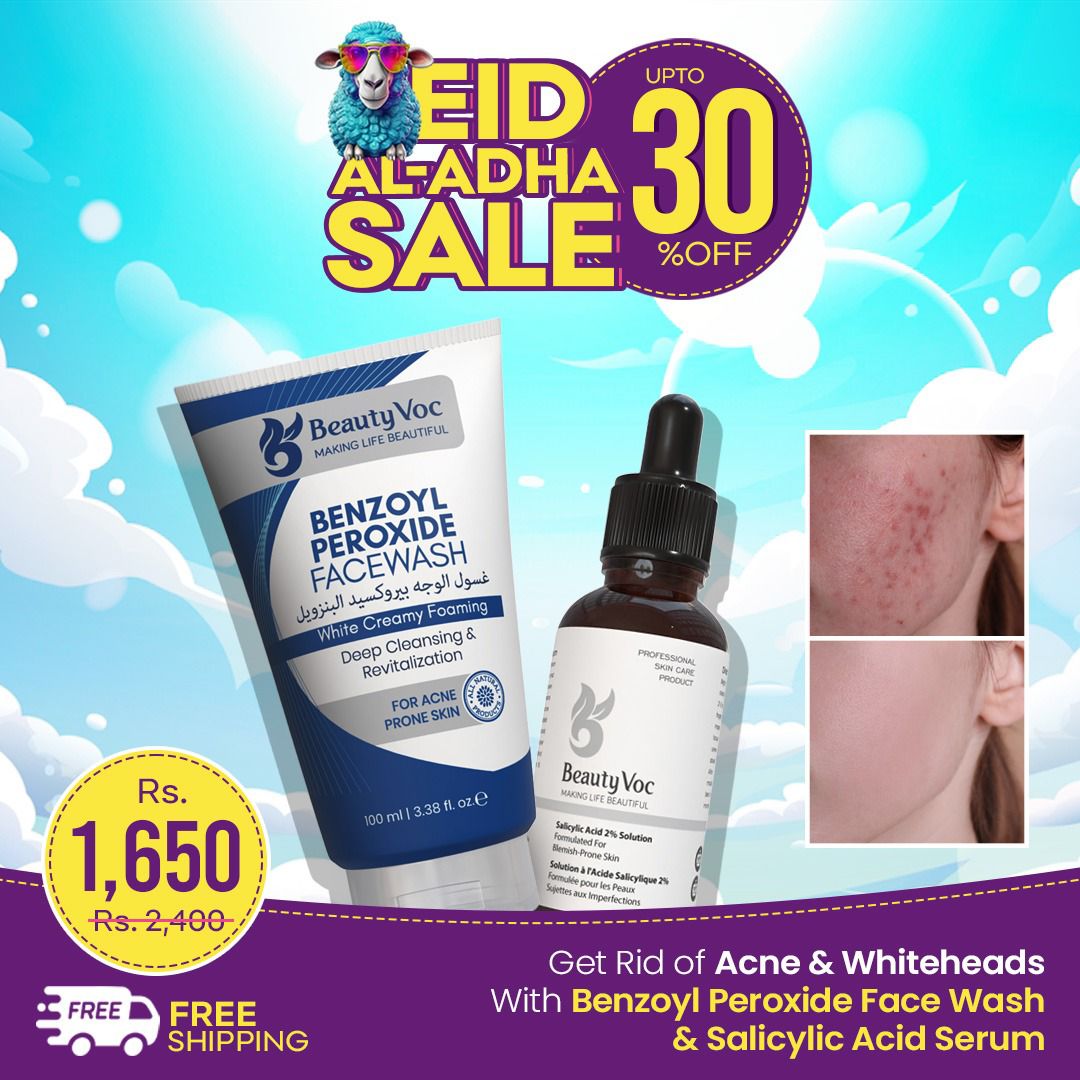 BeautyVoc 4% Benzoyl Peroxide Facewash + 2% Salicylic Acid Serum duo bundle is a powerful combination helps treat acne and pimples, clear pores, reduce acne causing bacteria and soothe inflamed skin for a clearer healthier complexion.