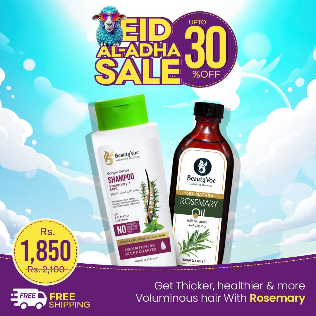 Pure Rosemary Oiland Rosemary Mint Sulphur-Free Shampoo bundle nourishes the scalp, reduces hair fall, and promotes thicker, fuller hair.
